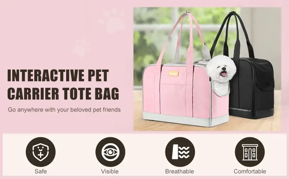 Dog Purse Carrier, Pet Carrier Tote with Pockets, Breathable Soft-Sided Pet Bag with Adjustable Safety Tether Strap for Shopping Travel, Pet Carrier Purse for Small Medium Dog Cat, Pink